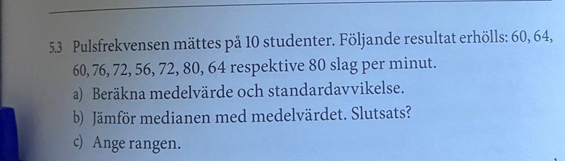 Rangen är väl differensen mellan största och minsta värdet (antar det är det det menar i uppgiften)