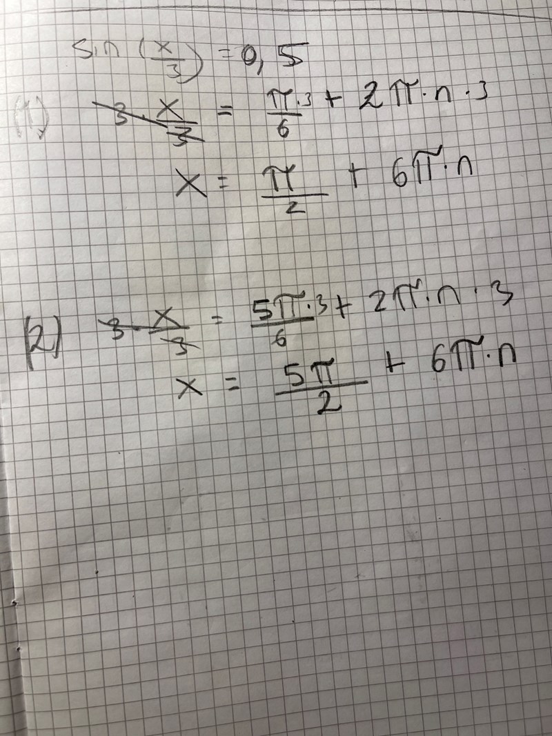 Man borde isåfall inte kunna förenkla lösningen. Utan x1= pi/2 + n•6pi