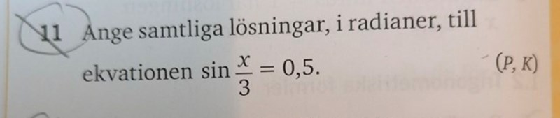 - Markera tydligt den punkt på enhetscirkeln som pekas ut av en radie med den vinkel du får ur första lösningsmängden då n = 0, dvs vinkeln pi/2.