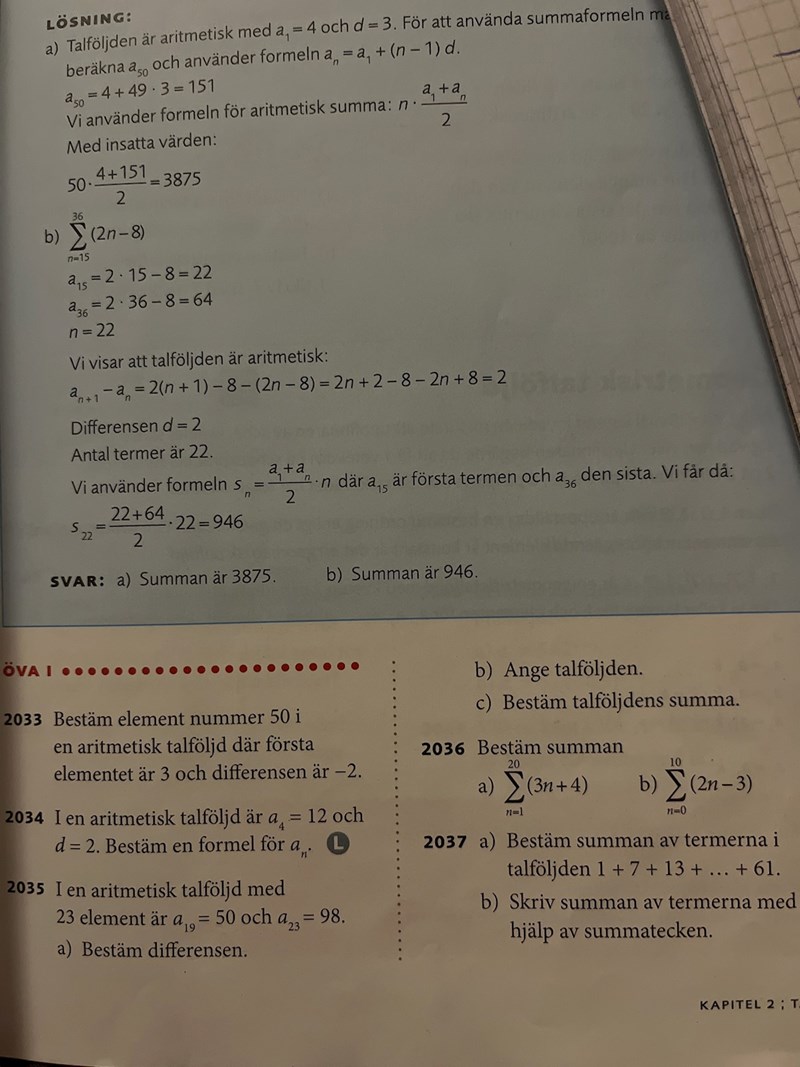 Hej, när det står ange talföljden i boken, betyder det skriv formeln för an eller räkna upp de första talen i talföljden? 2035b. För tidigare i boken har de skrivit bestäm en formel om det är en formel de söker. Så jag tänkte att jag skulle räkna upp de första talen men det är fel.