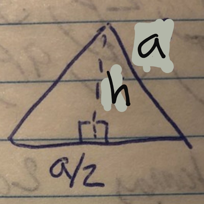 Du är helt klart på rätt väg, men du glömmer att den ursprungliga stora triangeln är liksidig och att alla dess tre sidor har längden a.