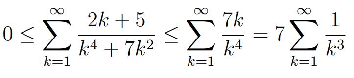 Hur kan du veta att 2k/k4 är större än (2k+5)/(k4+7k2), term för term (antar jag)?
