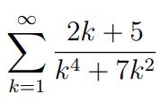 Smaragdalena skrev:Hur kan du veta att 2k/k4 är större än (2k+5)/(k4+7k2), term för term (antar jag)?