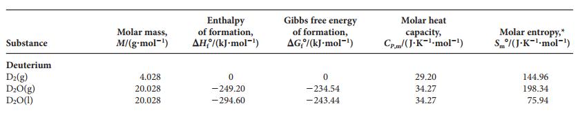 Förångningsentalpin för deuterium är skillnaden i bildningsentalpi mellan D2O(g) och D2O(l).