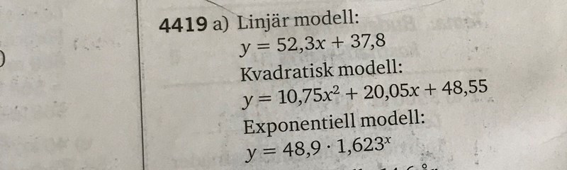 Jag har svarat på linjära och exponentiell, är det stämmer??? Kvadratisk vet jag inte 🤷♂️ tack för svar och hjälpen!