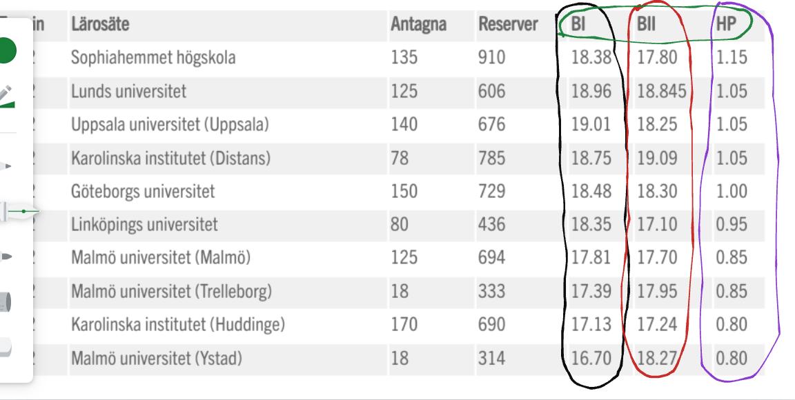 Och om jag ska se vad antagningspoängen ligger vart är det jag ska kolla på BI eller BII