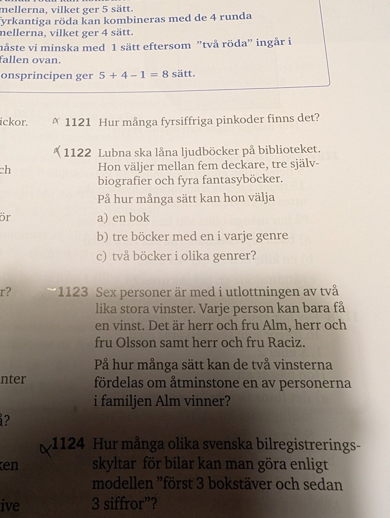 Jag fick det till 10 kombos för deckare, 3 för bio och 6 för fantasy, men.. ja. Jag vet inte.