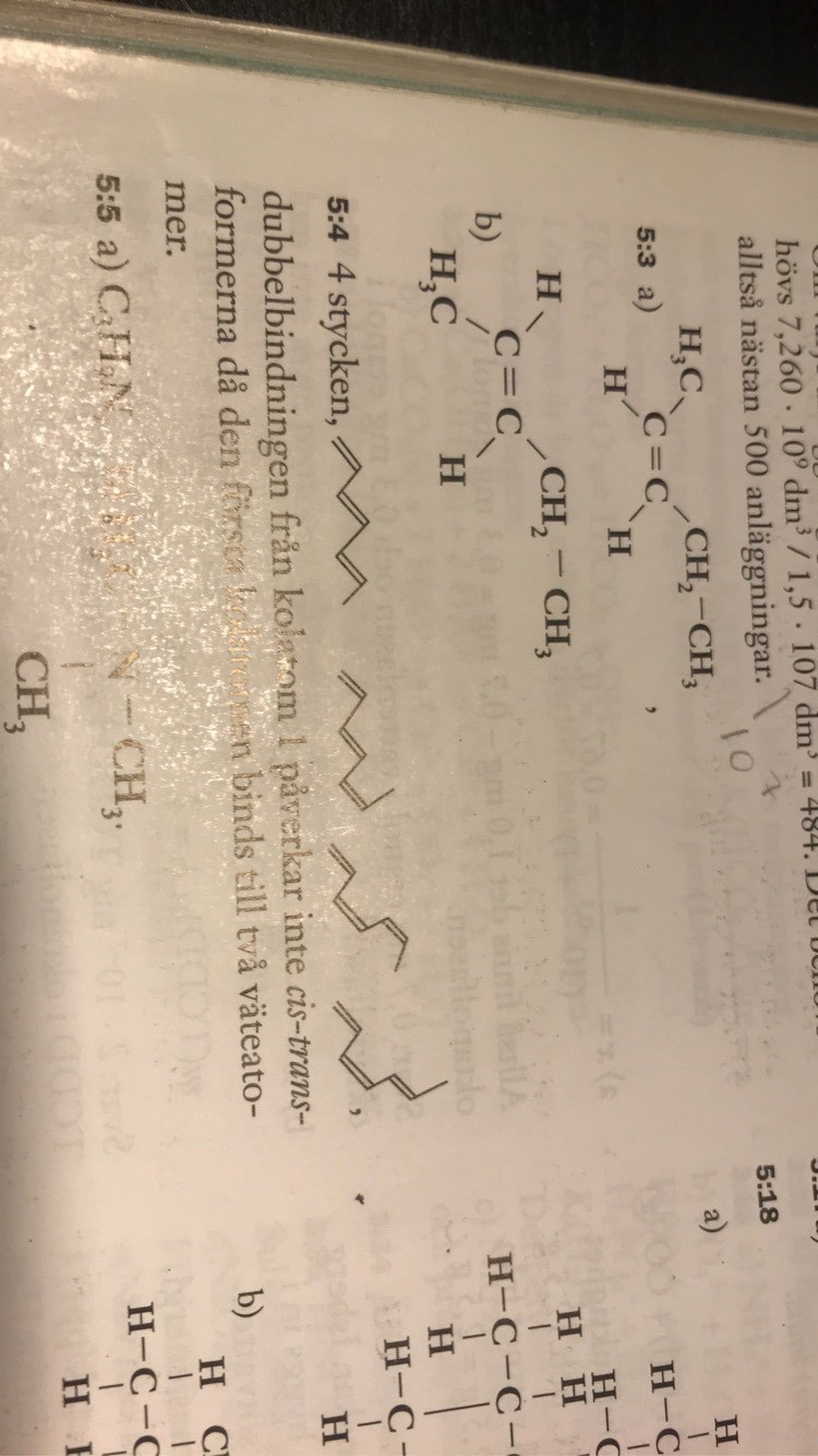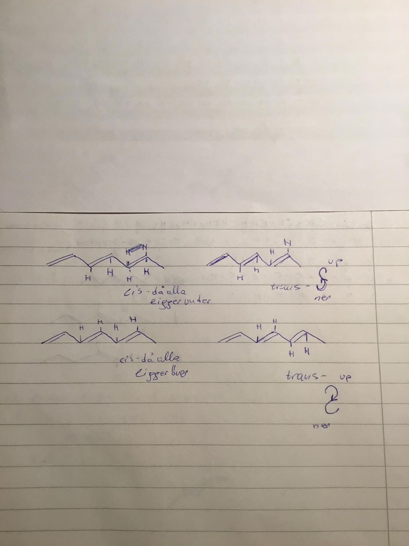 Hur många cis-trans-isomerer finns det av 1,3,5-heptatrien? Man ska visa med strukturformler, förstår inte riktigt hur man ska tänka? Hur ska man tänka i liknande fall? De visar bara streckformler i facit.