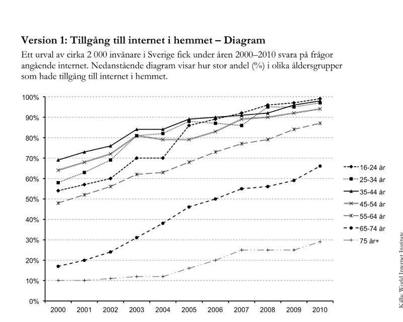Jag kan såklart inte heller säga att den ligger på exakt 10 % 2000 eller exakt 30 % år 2010. Men i och med att jag bara gör två avrundningar så minimeras felen i detta fall, och gör inte så stor skada.