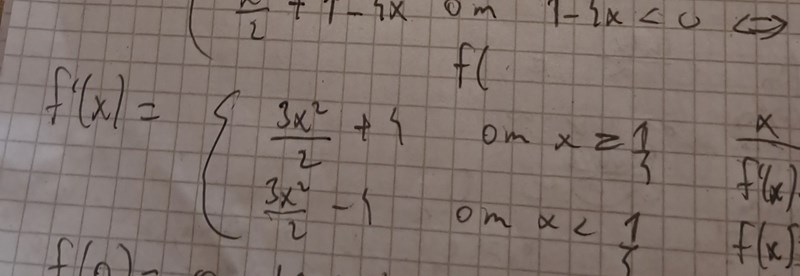 då blir f'(x) = 3x2/2 +4, om 1-4x >= 0