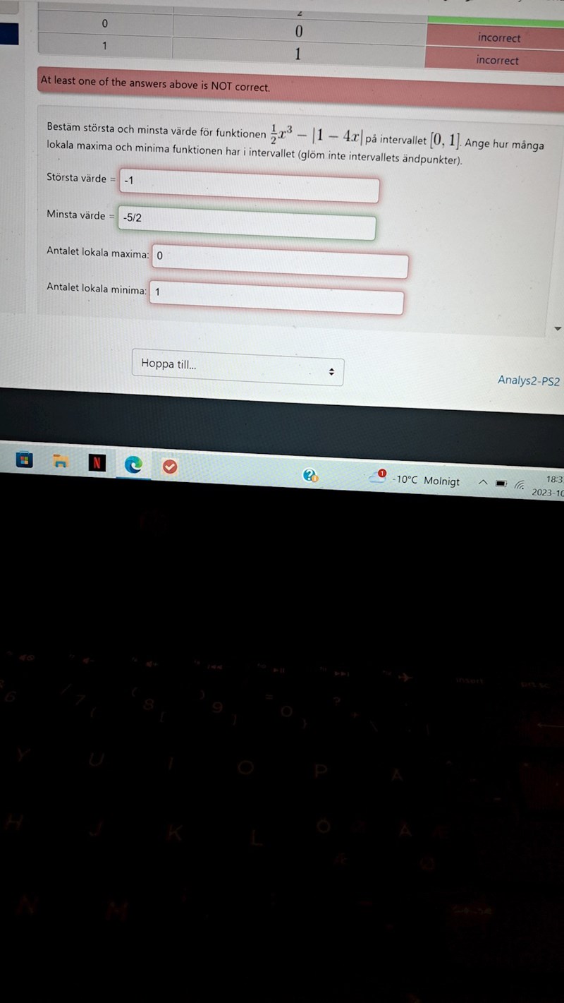Nu fick jag rätt gällande största och minsta värde. Enda vi behöver korrigera är antal lokala maxima och lokala minima som ej existerar enligt mig