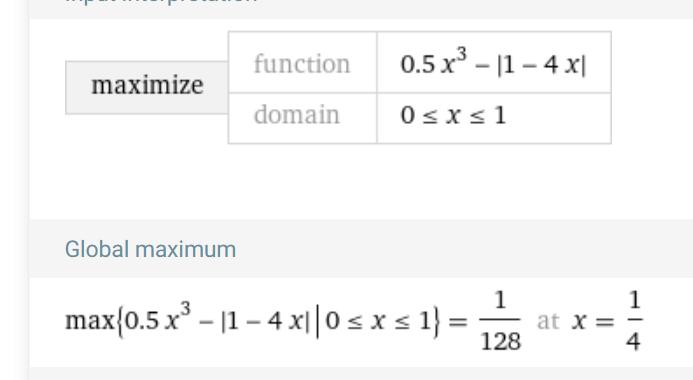 största värde 1/128 för x = 0,25