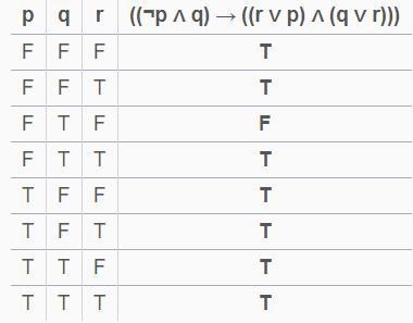 Här är sanningstabellen för exempeluttrycket angivet i uppgiften.
