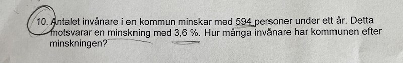 Hur många personer är det? Du vet att 594 personer är 3.6% av allihop.