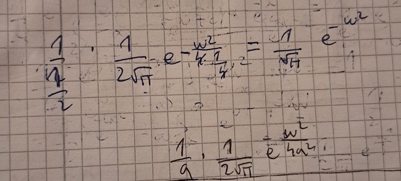 Vi har ju -w2/2 i exponenten inte -w2. Så det är lämpligt att välja a = 1/sqrt(2).