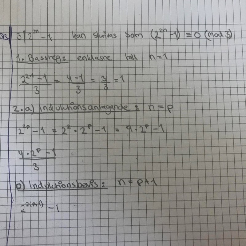 Jag har börjat, men jag vet inte hur jag sen ska fortsätta med mitt induktionsbevis.