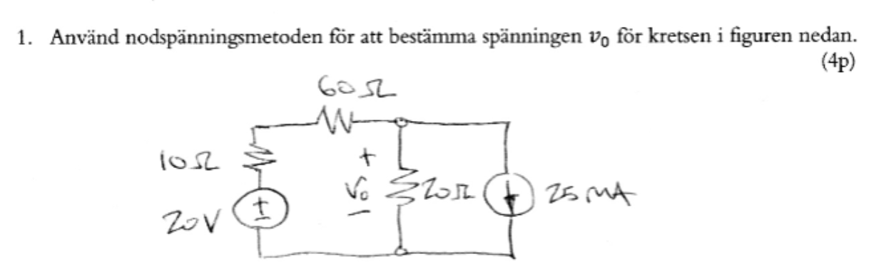 Använd nodspänningsmetoden för att bestämma spänningen V0