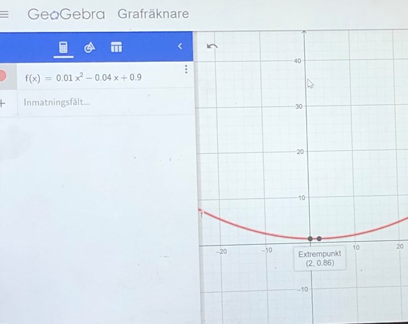 Värdet på minimipunkten måste alltså vara det lägsta värdet som funktionen kan anta, och i det här fallet där bränsleförbrukningen är lägst.