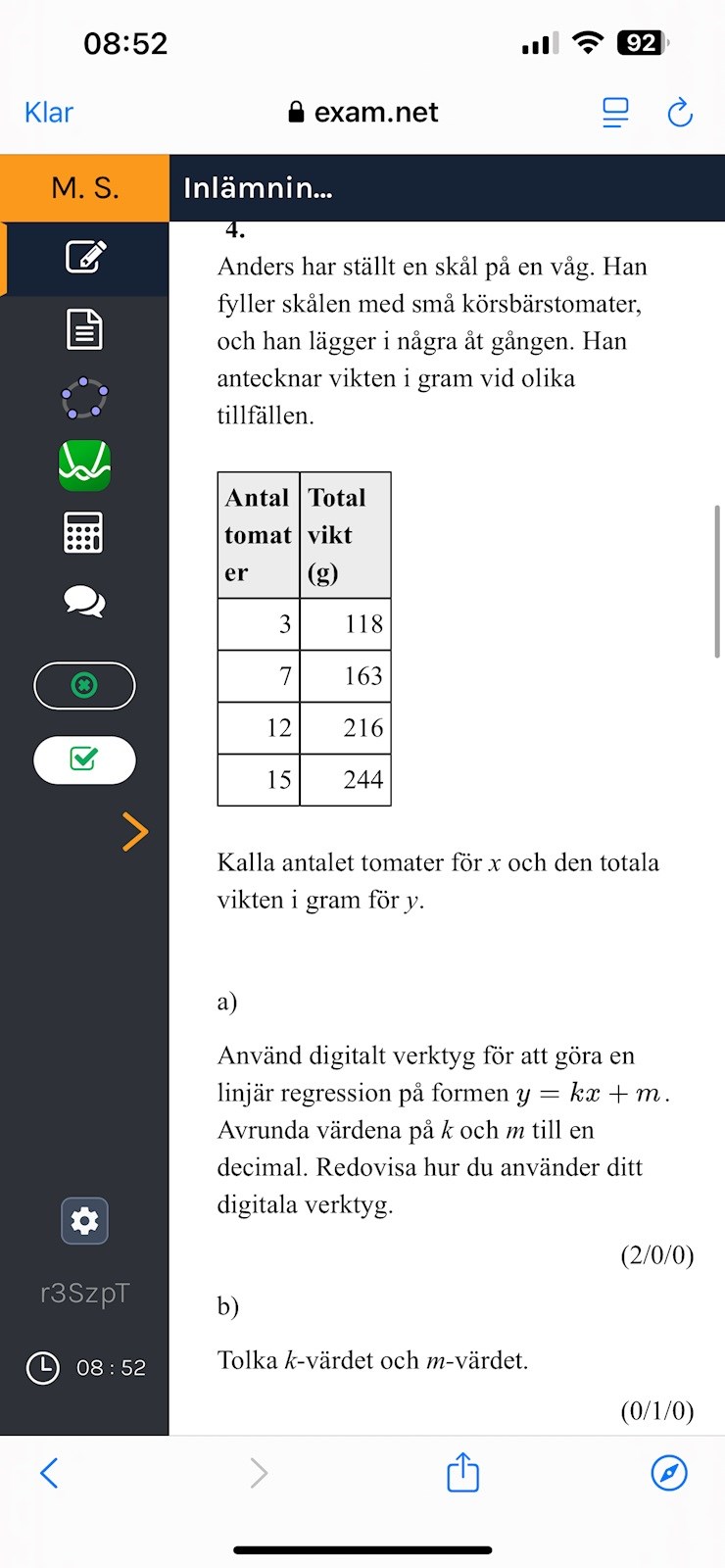 Hej. Här kommer en uppgift som jag behöver lite mer förklaring i hur jag ska gå till väga. Min första tanke är att skriva y=kx+m utifrån diagrammet så här