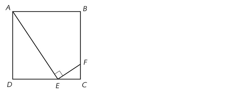 ABCD är en kvadrat med sidan 3 cm och E är en punkt på sidan CD. F är en punkt på sidan BC sådan att linjen EF är vinkelrät mot AE.