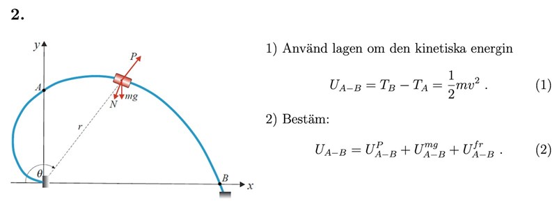 Förstår inte riktigt hur man kan använda sig av lagen om den kintetiska energin här när det finns en friktionskraft. Friktionskraften måste väl göra att arbetet mellan A och B inte alls bara är mv^2/2 eftersom friktionskraften också kommer ha spelat in.