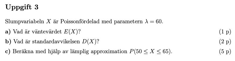 Jag gissar att du ska approximera Poissonfördelningen med en normalfördelning.