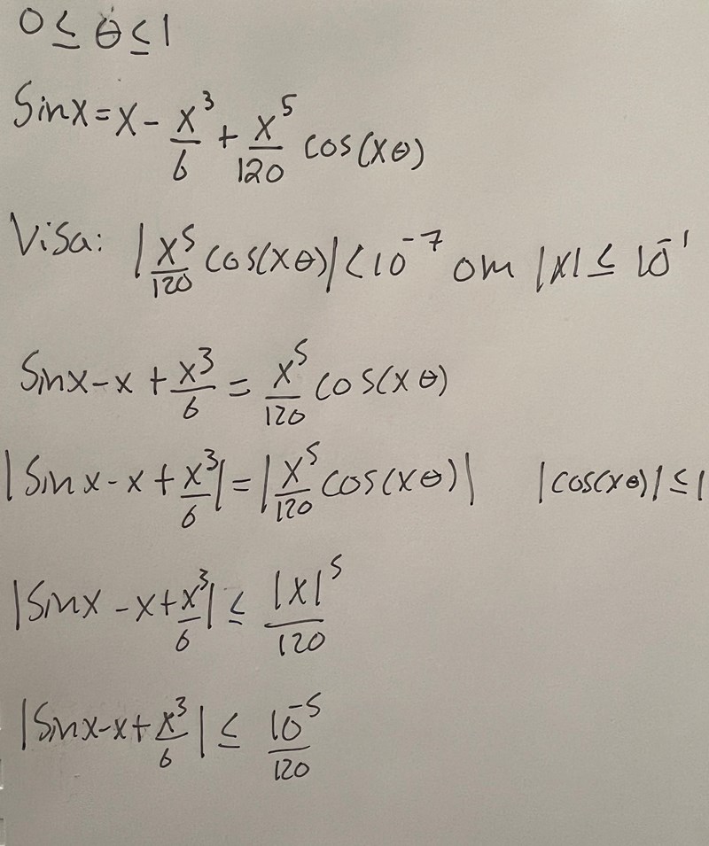 henrikus skrev:sinx = x-x3/6+(x5/120)cos(xt) =>