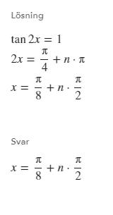 För att lösa uppgiften kan man tänka "För vilken vinkel gäller att tangens för vinkeln är 1?"