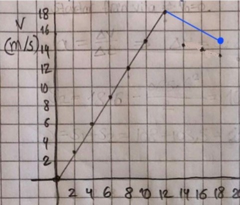 Enligt den så ändras hastigheten vid t = 12 s  från 18 m/s till 15 m/s.