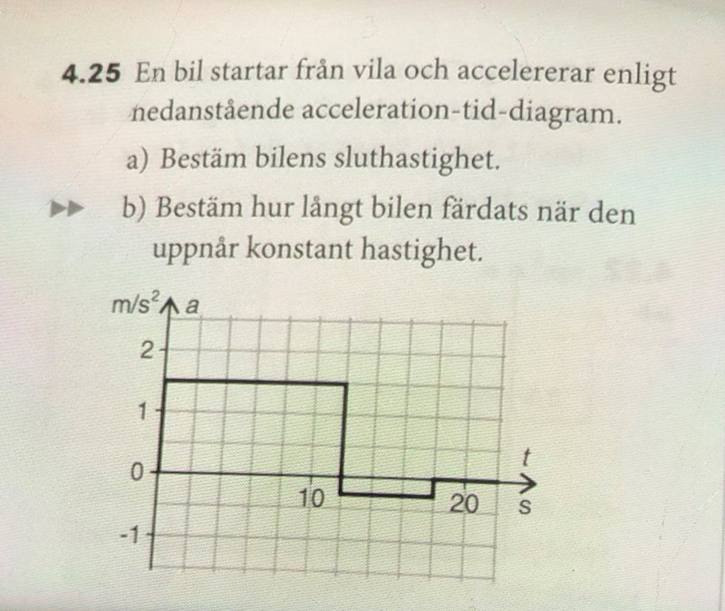 b) Hur kan jag räkna ut sträckan om accelerationen inte är konstant hela tiden? Eller får man då räkna sträckan från t=0 till t=12 och sedan från= 12 till t=18? Hur gör man?