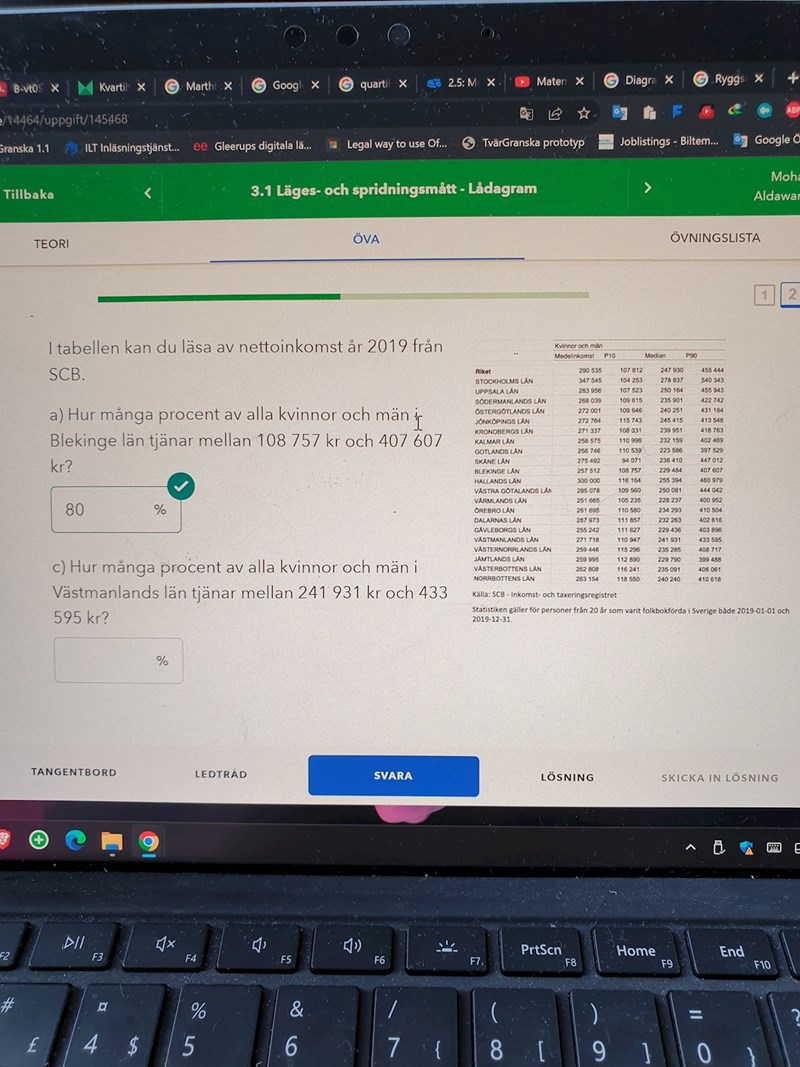 De säger mellan 241931 och 433595. Men om vi kolla median är 228237 det betyder att dett finns som 50% har mindre 228237 medan p90 som betyder att 90% har mindre än 400952 och vi vet inte hur mycke känner dem högsta 10%.
