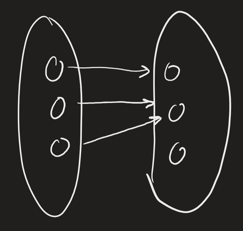 Ja det var ju bra. Men den är definitivt inte bijektiv heller, så då är den ingen av de tre. Det visste jag inte var möjligt