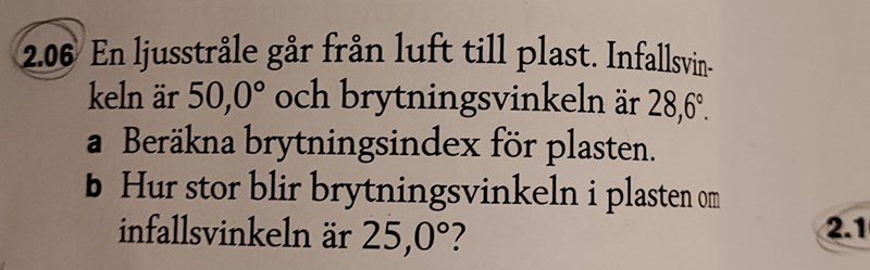 Detta ger mig fel svar varför? Brytnings indexet enlogt facit är 1.6