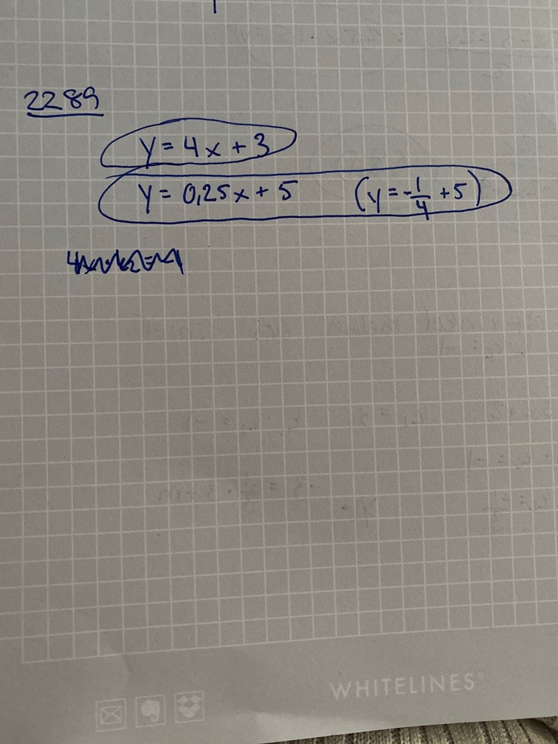 y=4x+3 går vinkelrätt med y=-x/4+5 (-0.25x+5)?