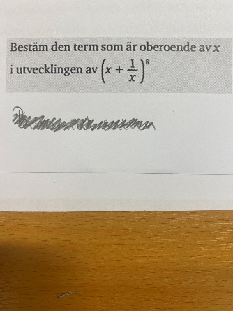 Matematik / Matte 5 1 svar 31 visningar Hjulle 8 Postad: 14 mar 2023 13:09 Är det binomial satsen som ska användas? Bubo 7913 Postad: 14 mar 2023 13:11 Ja. Användare skriver Svara Du behöver Logga in eller Bli medlem först! Avbryt