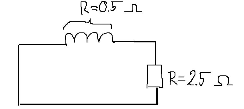 Jag tror jag har räknat som om spolen vore ett "batteri" utan inre resistans (en perfekt spänningskälla typ) och med två motstånd i serie med den här perfekta spänningskällan. Men det kanske är det du menar?