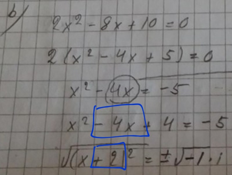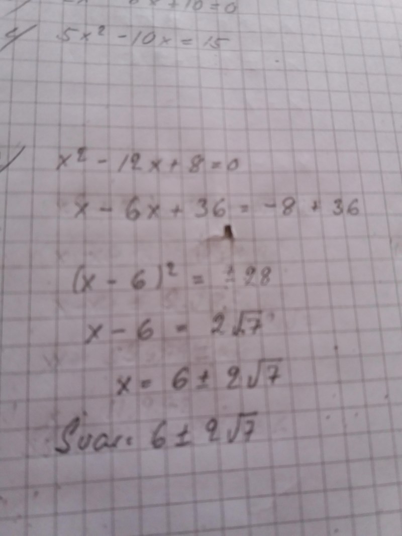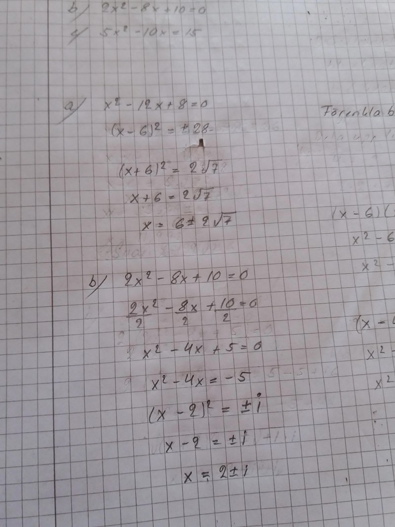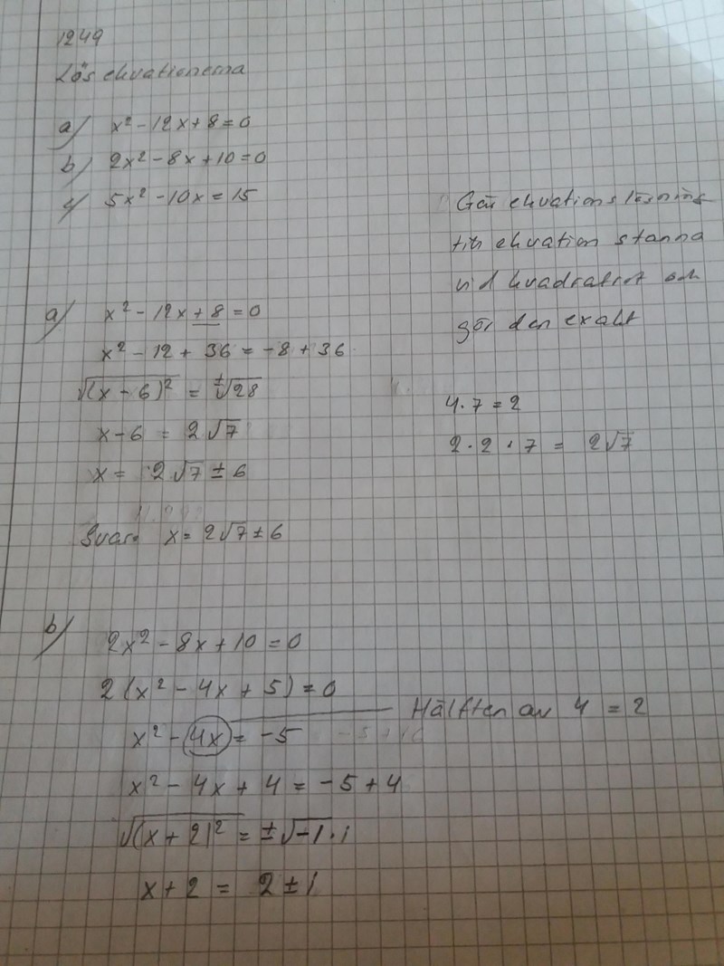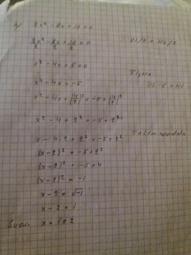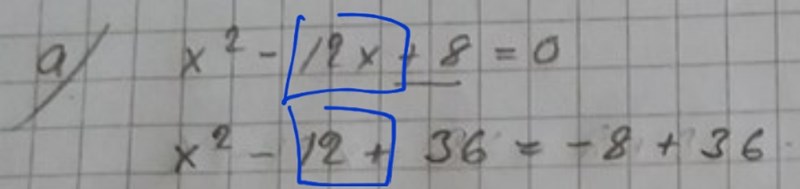 Jag har delat 12x till hälften och tredje termen satte till kvadrat. Tredje termen från VL har jag flyttat över till HL. Plus åttan tagit från VL och lagt den till HL och då ändrar åttan tecknet.