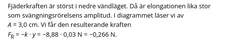Hej, jag förstår inte riktigt när den resulterande kraften ska räknas med -ky eller ky. När använder man vilken? I de två bilderna längst ner har en använt - och den andra + och som jag förstår det befinner sig båda fjädrarna i det nedre vändläget.