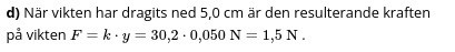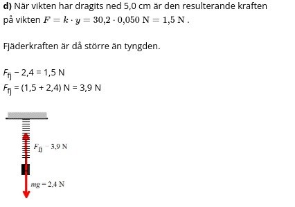 Svårt att säga, bara med ledning av texten, en bild som visar försöksuppställningen skulle göra det enklare. i mittbilden står det att den resulterande kraften på vikten är 1,5 N, men det är omöjligt att säga åt vilket håll resultanten är riktad. Det är troligen 2 krafter som verkar på vikten, dels fjäderkraften uppåt dels en kraft som drar vikten nedåt, av texten framgår inte vad som är positiv riktning, inte heller vilken av de två krafterna som är störst.