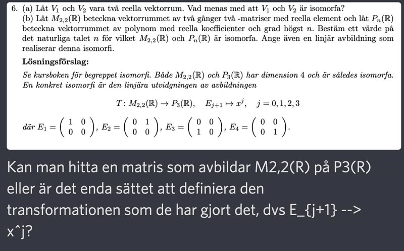 Är det här det enda sättet att definiera transformationen från M_{2,2}(R) --> P_3(R)?