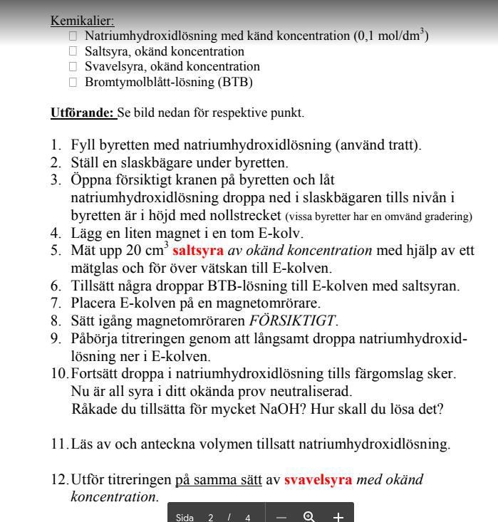 Det är en titrering utav Syra-bas ämnen. Är det rätt så jag har gjort?