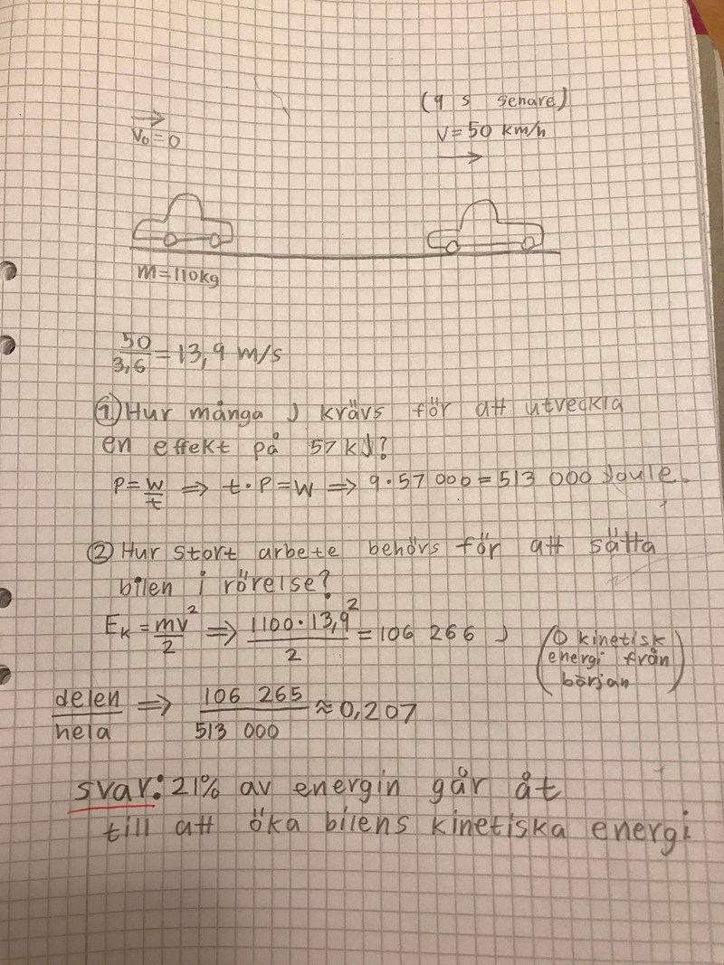 Hur många J krävs för att utveckla en effekt på 57 kJ?