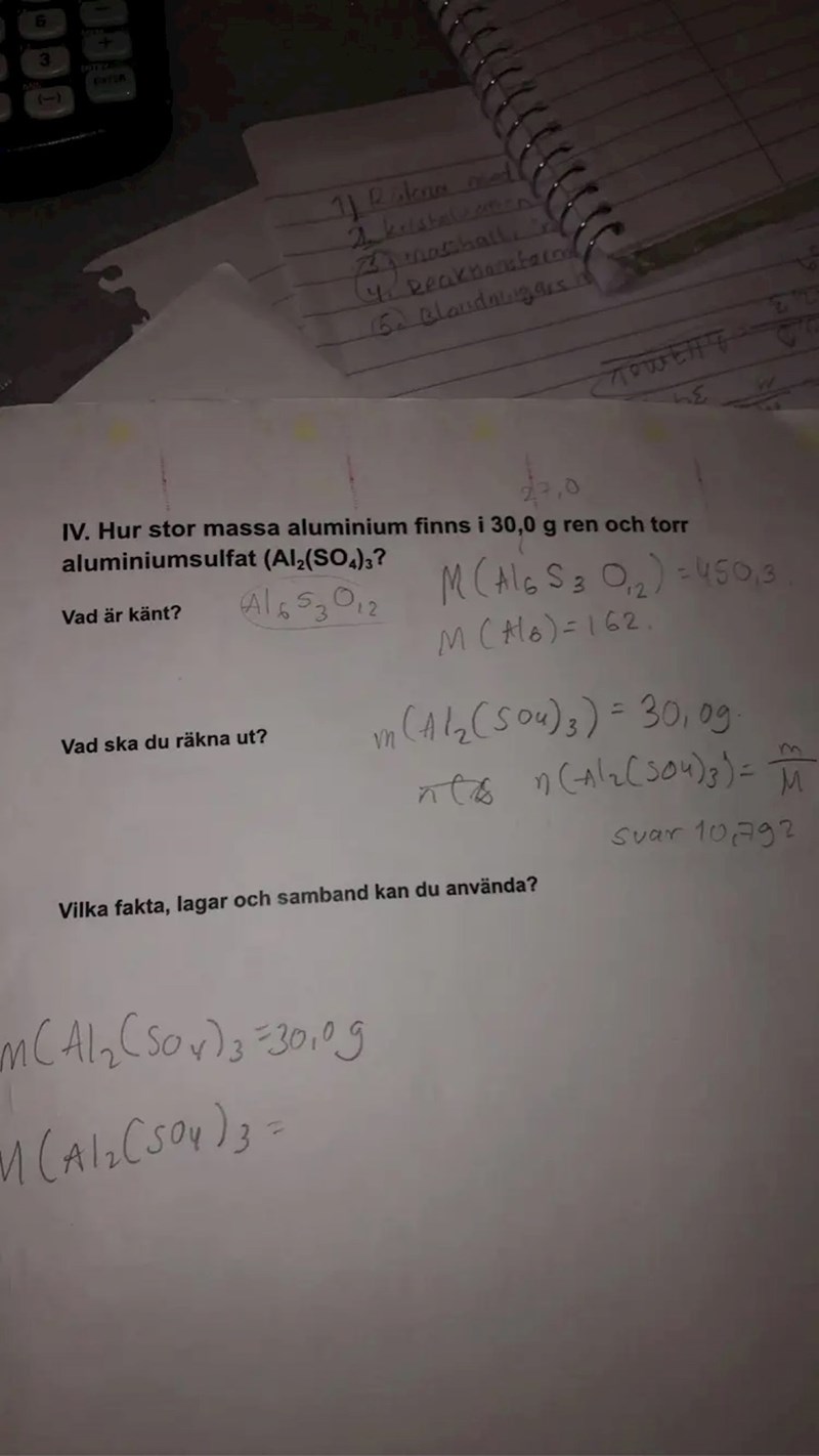 Du har räknat fel redan på molmassan. Vilken är molmassan för Al2(SO4)3?