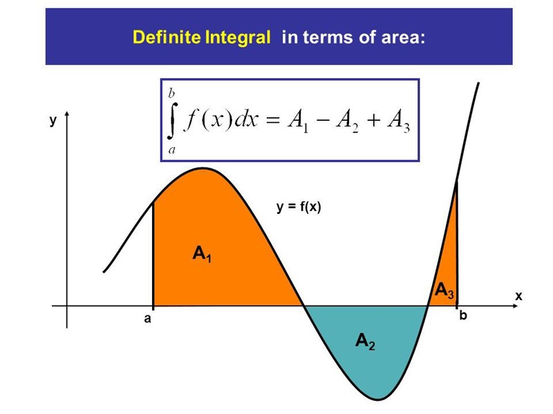 Arean mellan grafen till funktionen (där ligger mellan och ) och x-axeln inte lika med integralen