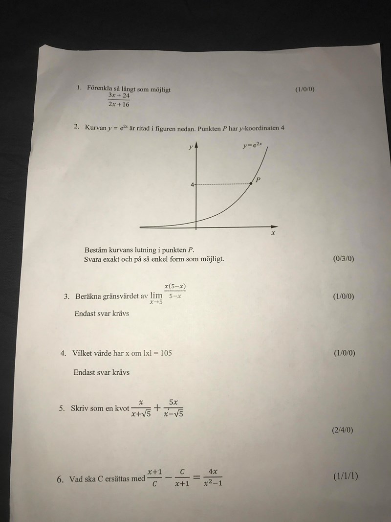 Uppgift 3 kanske det kunde varit ett enklare gränsvärde för E-poängen. Det är dock småsaker. Alla lärare utformar prov på lite olika sätt.