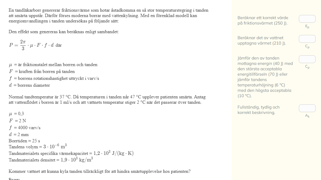 Det står att borren generar en friktionsvärme, men detta är väl inte friktionsvärme utan enbart den energi som krävs för att borren ska kunna arbeta (dvs. P = E/t) där E = P*t? Eller är det skillnaden mellan energin som borren avger - energin som vattnet upptar som räknas som "friktionsvärmen"?