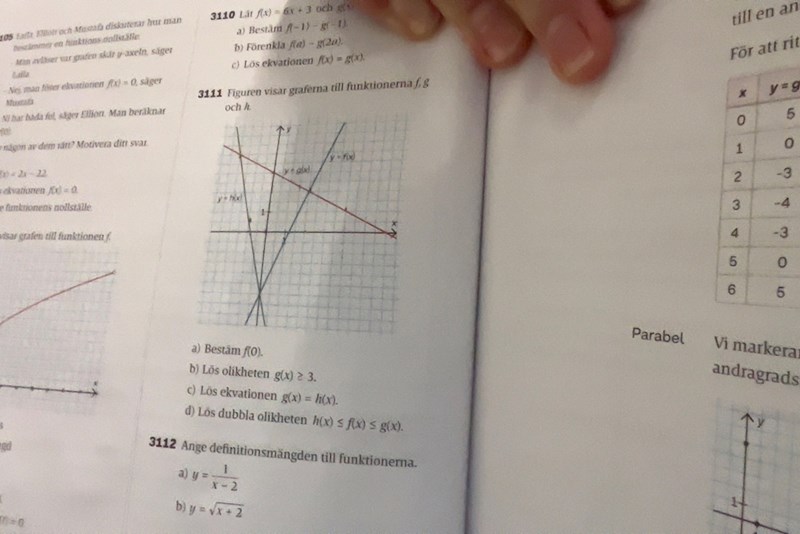 Taken är nog att du ska använda bilden över graferna istället för att ta fram funktionsuttrycken.