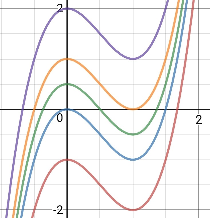 Kan någon förklara varför varför -1<a<0 ger tre rötter och a<-1 ger en rot? Jag tänkte att om kurvan kommer under x-axeln bör det ge tre rötter då grafen skär den tre gånger och om om den ligger över den bör den endast ge en rot där x=-0,5