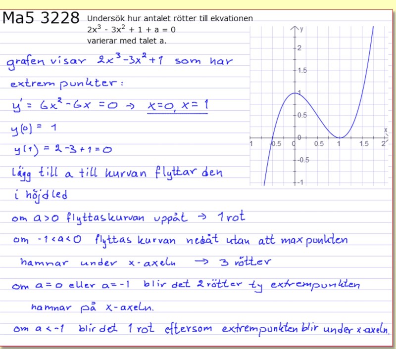 - om -1 < a < 0 så har ekvationen tre nollställen.