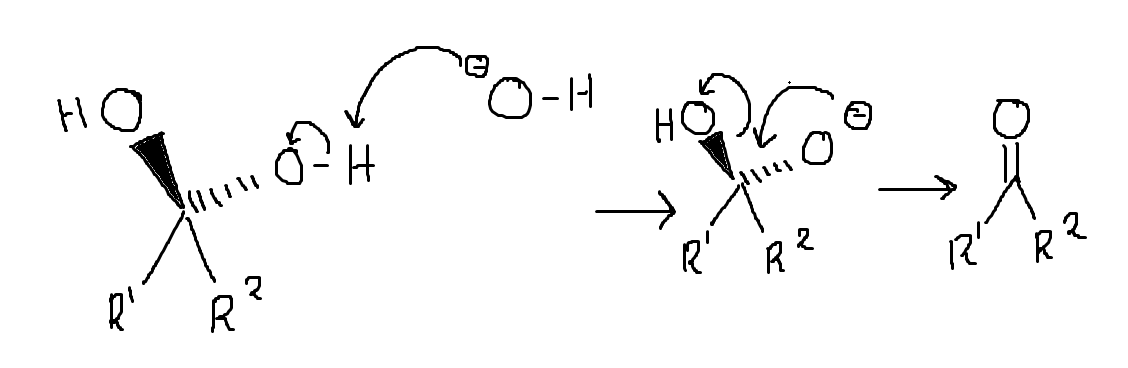 Jag har helt enkelt försökt tänka mig bildningen av hydratet från ketonen fast åt andra hållet. Ser detta rätt ut?